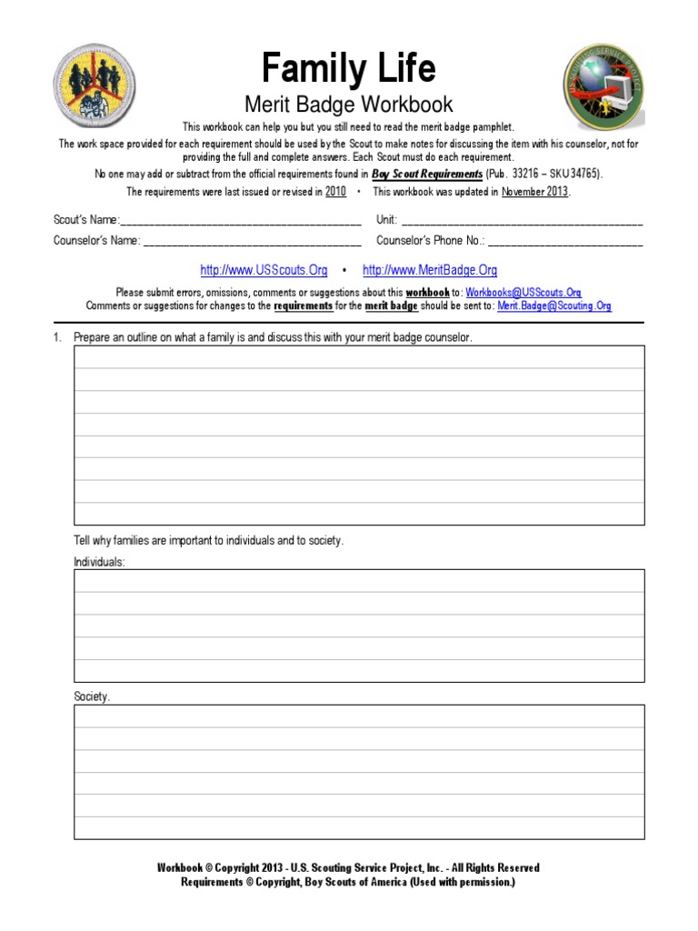 Boy scouts family life merit badge worksheet.