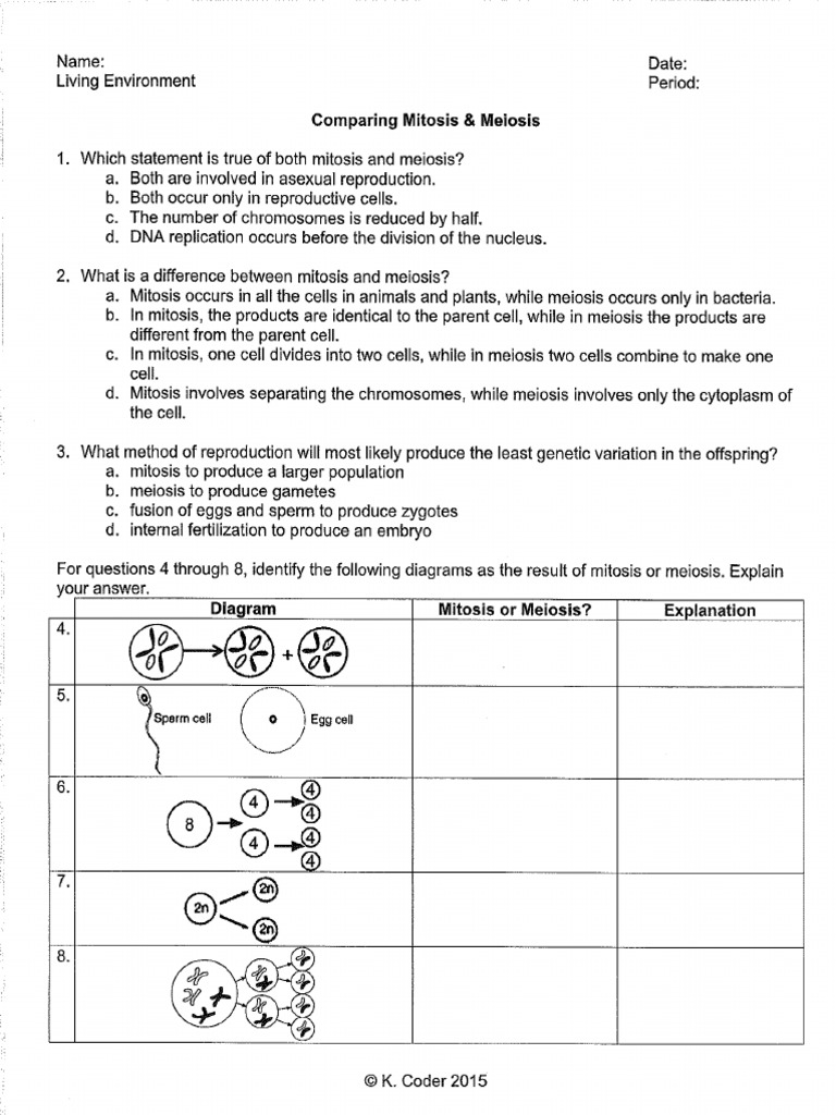 Comparing mitosis and meiosis worksheet answer key.