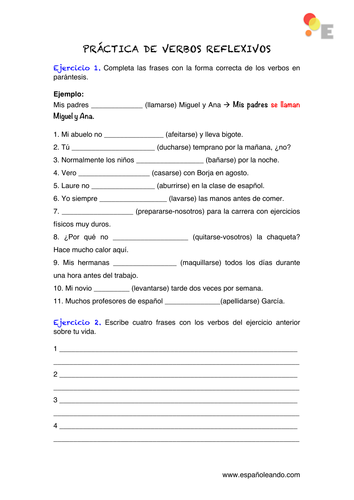 Showing top 8 worksheets in the category - Verbos Reflexivos. Gramatica verbos reflexivos capitulo 2 answers Los verbos reflexivos en español indican un tema que ejerce y recibe el funcionamiento del verbo. Te mencionamos algunos de los verbos reflexivos que muestran acciones. Lavarse las manos wash your hands.