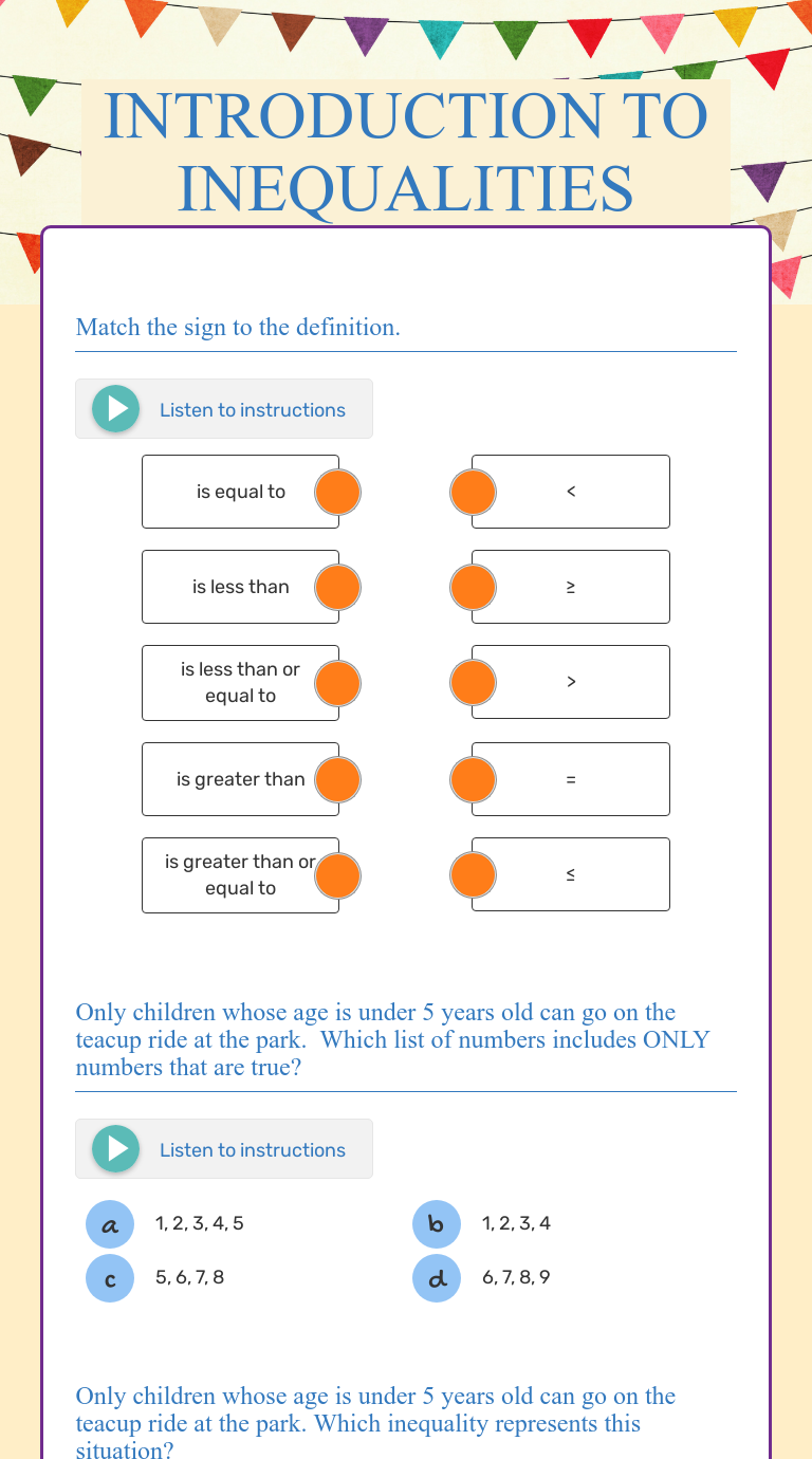 Introduction to inequalities worksheet.