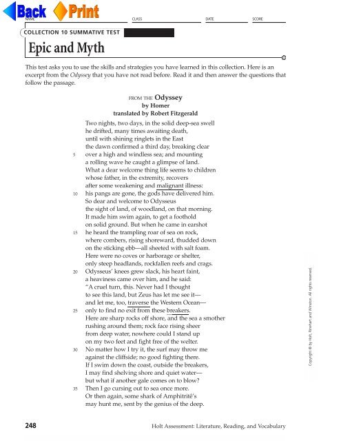 HOLT, HRW, and the "Owl Design"are trademarks licensed to Holt, Rinehart and Winston, registered in the United States of America and/or other jurisdictions. Printed in the United States of America If you have received these materials as examination copies free of charge, Holt, Rinehart and Winston retains title to the