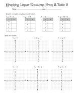 Constructing Linear Tables and Graphs from Equations Worksheet #1 by Secondary Math Collection $3.00 PDF Constructing Linear Tables and Graphs from Equations This worksheet is designed for students to practice constructing linear tables and graphs from equations. There are 4 problems total.