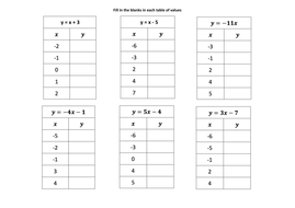 Linear Graphs - Table of Values Method - Complete Lesson. Resources for over 500 topics available for free at goteachmaths.co.uk! A complete PowerPoint presentation, including worksheets to print.