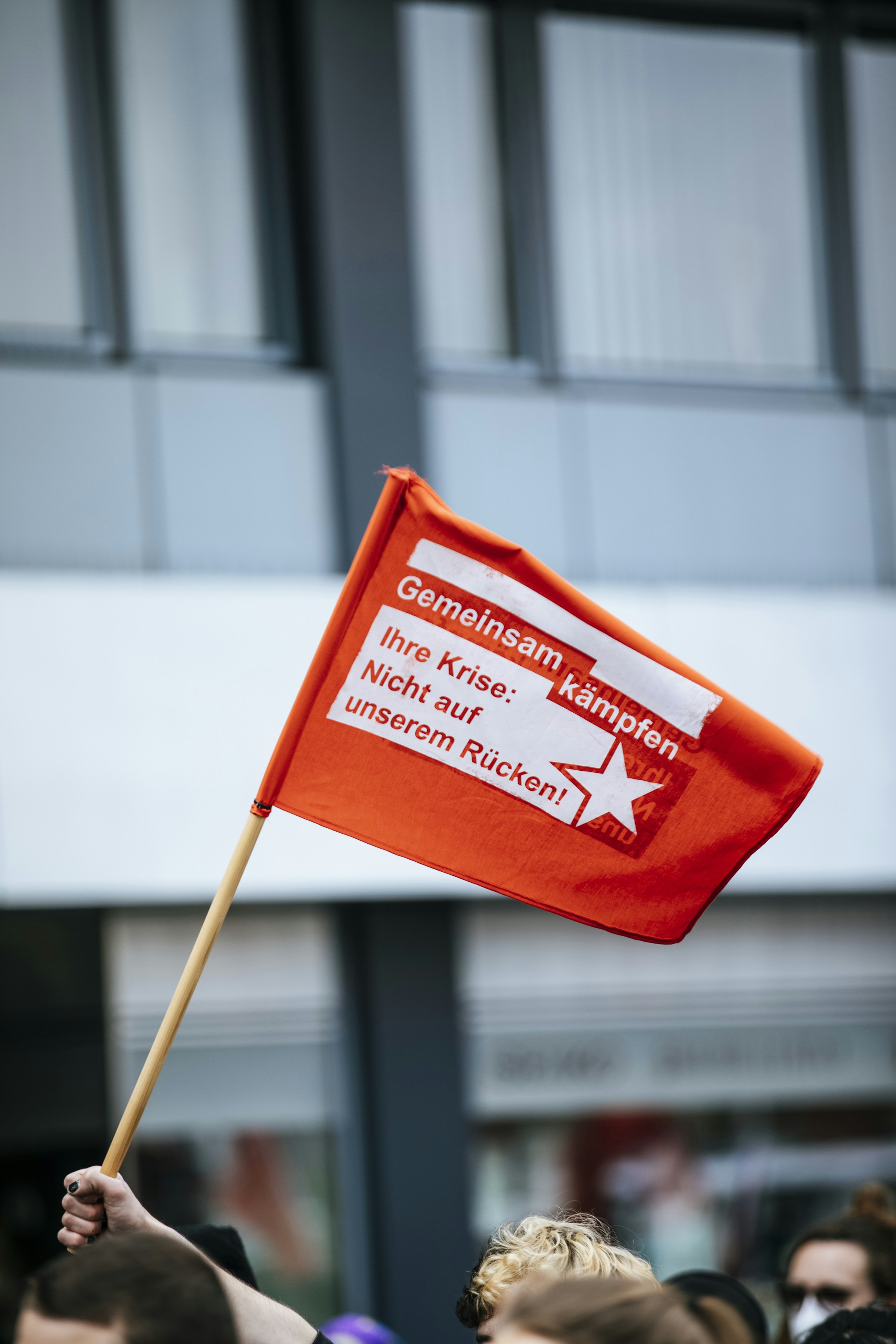 FIGHTING TOGETHER. YOUR CRISIS: NOT ON OUR BACKS! (Gemeinsan kämpfen. Ihre Krise: Nicht auf unserem Rücken!)