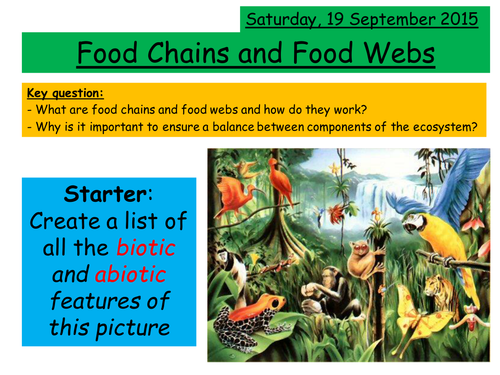 Food Chains and Food Webs. High School Biology Worksheets and ... Food Chains and Food Webs. High School Biology Worksheets and Answer keys, Vocabulary Sets. Food Chains and Food Webs - Biology Biological dynamics of Earth. Relationships within a community: predation, competition, parasitism, mutualism, commensalism. Construct a food chain. Construct a trophic-level pyramid (energy level).