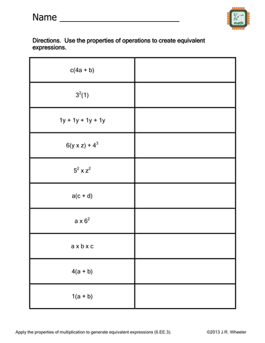 6.EE.A.3 - Writing Equivalent Expressions Worksheet - 6th ... Free printable 600 Worksheet for Grade 6 students to gain skills mastery in Writing Equivalent Expressions.