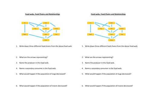 Food Webs and Food Chains Worksheet | Teaching Resources 4 Feb 2014 — A worksheet I have created which provides a comprehensive test of pupils understanding of food webs and food chains.