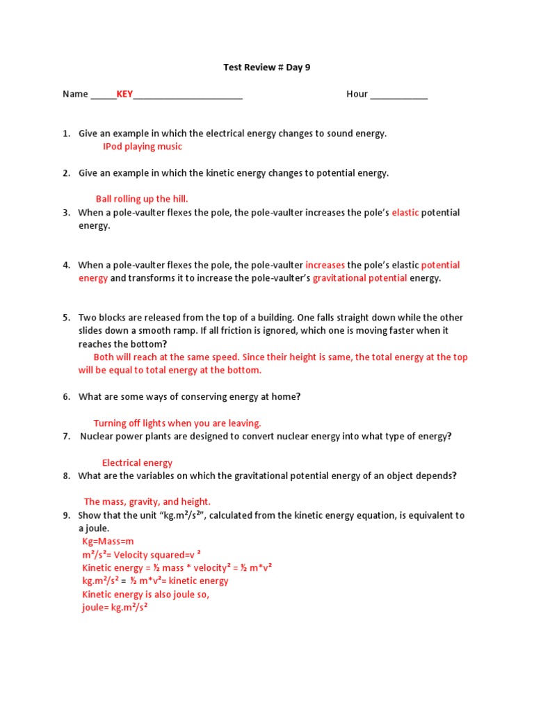 kinetic and potential energy worksheet answers - Bing Potential Or Kinetic Energy Worksheet Kinetic And Potential Energy Science Worksheets Energy Transformations. Plus, you'll get the inside scoop on the ten most common mistakes people make when ... Tests with Answer Key (A Level Physics Worksheets & Quick Study Guide ...