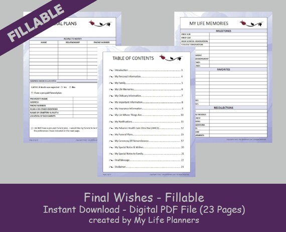 Final Wishes Planner, Funeral Planner, Burial Arrangements, Remembrance Kit, Happy Planner Insert, Fillable, Printable, PDF, Purple