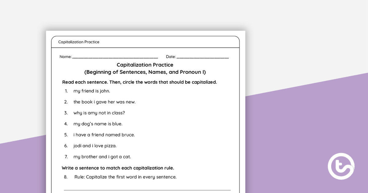 Fix the Sentences: Level A Worksheets On these printable worksheets, students look for errors in the sentences and correct them. Errors are mostly related to capitalization, punctuation, and spelling. These can be used individually, or as a daily/weekly review.