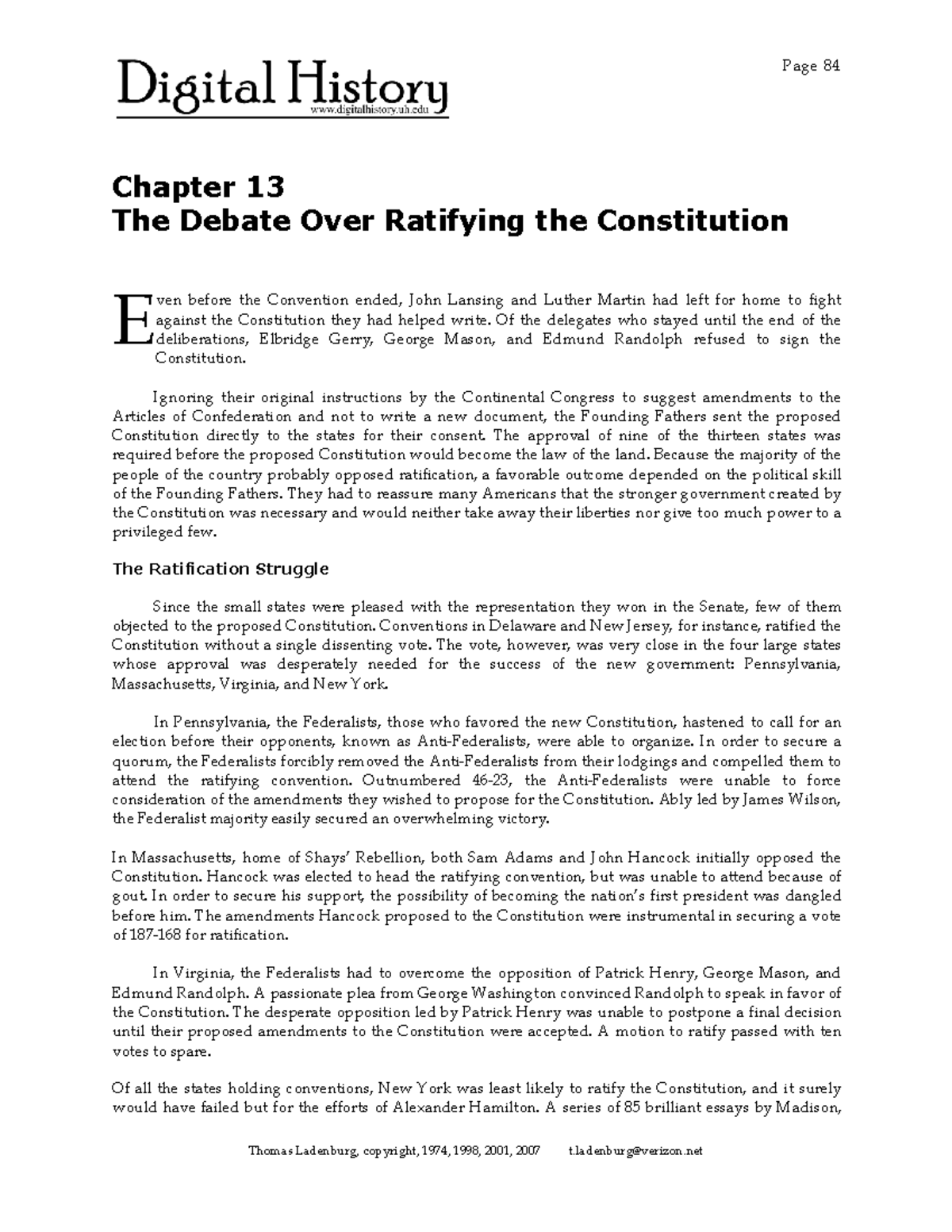 PDF Prepare to Read L3 Ratifying the Constitution Ratification of the Constitution Arguments Against • A strong central government would undermine basic liberties. • • Objectives As you teach this section, keep students focused on the following objectives to help them answer the Section Focus Question and master core content. • Summarize the arguments for and against ratification of ...