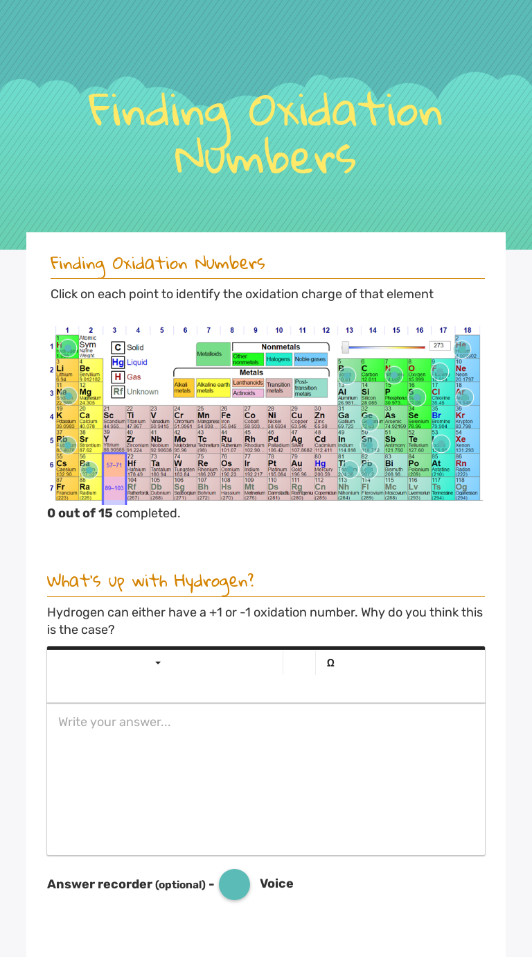 Worksheet Assigning Oxidation Numbers Answer Key ... A pure element has an oxidation number of 0. Worksheet assigning oxidation numbers answer key. Na 2 o 2 na o 2. Sio2 si o 3. The sum of the oxidation number of all the elements in a compound equals 0. Assigning oxidation numbers. Formula element and oxidation number formula element and oxidation number 1. Oxidation State Worksheet Answers - Sixteenth Streets Oxidation State Worksheet Answers. Aug 22 2020 the oxidation number of oxygen in a compound is 2 except in. This exercise is designed to teach the student how to. Oxidation Numbers Worksheet With Answers from numbersworksheet.com The "unknown" oxi dation state is the number that must be added to the total of the "known" oxidation Assigning Oxidation Numbers Worksheet Part B Answer Key ... Assigning Oxidation Numbers Worksheet Part B Answer Key. by Hedvig on October 3, 2021. October 3, 2021 on Assigning Oxidation Numbers Worksheet Part B Answer Key. Ap Chemistry Snow Day 6. Assigning Oxidation Numbers Worksheet Answer Key Nidecmege. Worksheet Oxidation Numbers Answer Key Nidecmege. Assigning Oxidation Numbers Worksheet Answers. Answer Key Assigning Oxidation Numbers Worksheet - Explore ... Formula element and oxidation number formula element and oxidation number 1. Answer key cio cll nao 5. 1 hcl 8 h 2o 2 15 lih h 1 h 1 each li 1 cl 1 o 1 each h 1. Once you find your worksheet click on pop out icon or print icon to worksheet to print or download. Na2o2 na o 2. Microsoft word 14 04 oxidation numbers worksheet doc author. Al 2o 3 f.