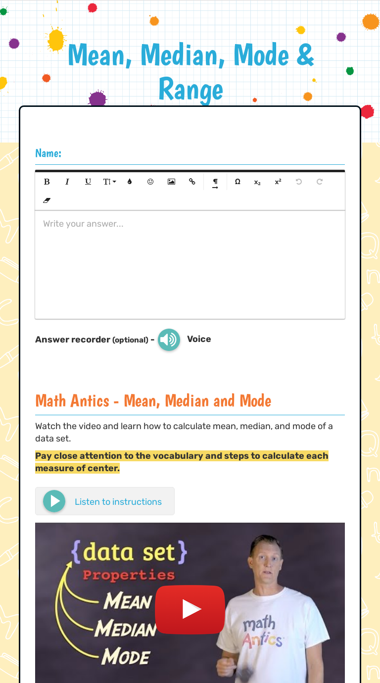The measures of center worksheet | Email my answers to my teacher Measures of center online worksheet for 6. You can do the exercises online or download the worksheet as pdf. ID: 1990393 Language: English School subject: Math Grade/level: 6 Age: 11-12 Main content: Measures of center Other contents Worksheets Worksheets Free Worksheets for Teachers, Parents, and Kids. How many times have you found a website that says "Free Worksheets" only to realize several minutes later that most of the worksheets are only available to paid members? It happens more often than it should. Tracing Worksheet Maker | Education.com Create your own tracing worksheets with our interactive worksheet maker. Once your worksheet is completed, use the "Download Worksheet" button to download and print your creation or click "Save" to save your tracing worksheet for downloading at a later time.
