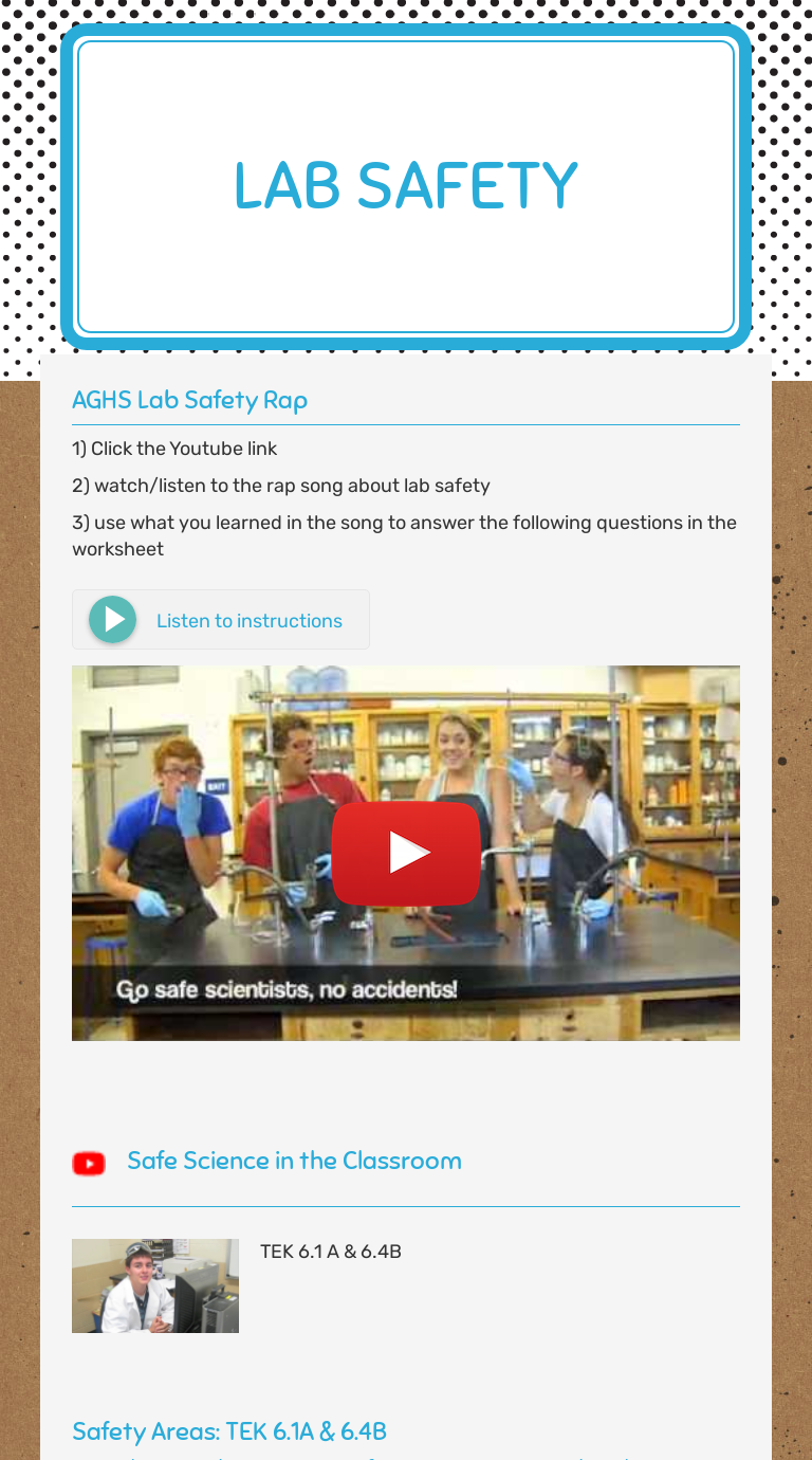 PDF Laboratory Safety for Biology and Environmental Science ... Student!LearningObjectives!! At!the!end!of!this!activity,!the!student!will!be!able!to:!!! Recognize!common!rules!that!allow!for!a!safe!working!environment!in!the