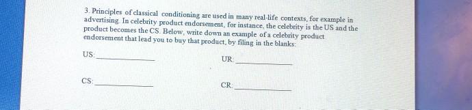 PDF Classical Conditioning worksheet - cbcpsychology Classical Conditioning worksheet Part A Identify the neutral stimulus(NS) unconditioned stimulus(UCS), Conditioned stimulus(CS), Unconditioned response(UCR) & Conditioned response(CR) in the following scenarios. Hint: If it has a 'U' in front of it, it must be a natural stimulus or response The NS and CS should be the same