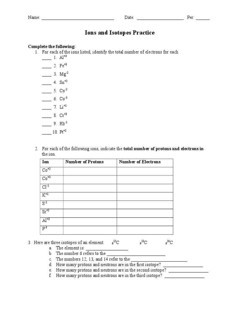 Inspiration Ions And Isotopes Worksheet - Goal keeping intelligence Isotopes and ions worksheet answer key. Total number of protons and electrons in. Iodine 85 iodine 88 of protons 53 53 of neutrons 32 35 of electrons 53 53 iron 53 iron 56. Here are three isotopes of an element. Isotope and Ions Practice Worksheet Name. Ion Practice Set.