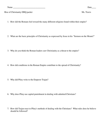 study.com › academy › lessonChristianity in Europe: History, Spread & Decline - Video ... Oct 21, 2021 · Christianity in Europe has had a tumultuous history. Explore the spread of Christianity, and how key events, such as the passage of the Edict of Milan, the Great Schism, and the Protestant ... Christianity In Rome Worksheets & Teaching Resources | TpT The assignment contains 27 questions about the birth of Christianity in the Roman Empire. Students will watch a 3-minute video clip and use an internet article to answer the questions. I have included an answer key. Please message me if you have any questions. *Engaging! *Editable Word Document*The Subjects: