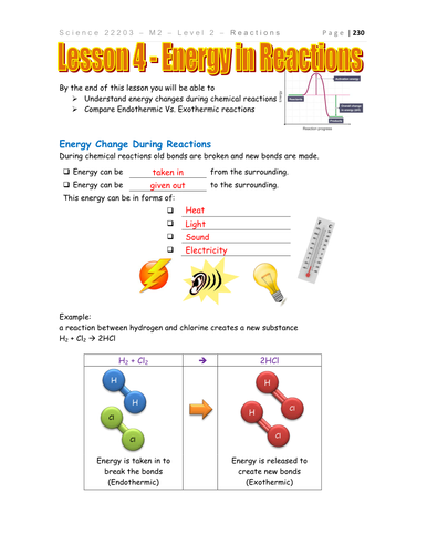 PDF Energy and chemical reactions worksheet answers Energy and chemical reactions worksheet answers In grade 10, students learned about physical and chemical changes. In this chapter students will learn about the energy changes that occur in chemical reactions. The concepts of exothermic and endothermic reactions are introduced. Students will also learn about activation energy.