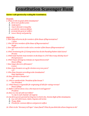 Congress Scavenger Hunt Answer Key: Fill & Download for Free - CocoDoc Start on editing, signing and sharing your Congress Scavenger Hunt Answer Key online under the guide of these easy steps: Click on the Get Form or Get Form Now button on the current page to direct to the PDF editor. Give it a little time before the Congress Scavenger Hunt Answer Key is loaded