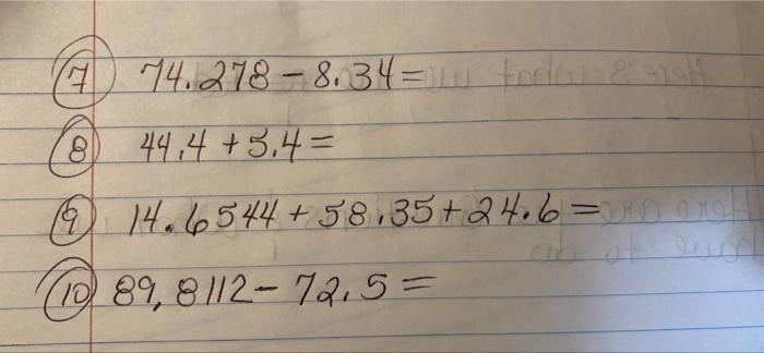 PDF Name : Score : Teacher : Date - Ms Di Lallo's Science Class Site Name : Teacher : Date : Score : Math-Aids.Com Solve the Problems and Round Accordingly. 1) 71.7675 - 1.944 = _____ 2) 5.813 + 1.8 + 9.3264 = _____ 3) 81.532 + 1.138 ...