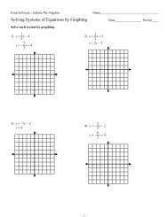 Solving systems of equations by graphing worksheet. Simplify square roots calculator - softmath Middle school pre-algebra worksheet, worksheet for solving systems of equations, give me answers to high school algebra problems for free. "simple fraction" worksheets, programing equations in TI89, rules of square root, simplify complex fraction calculator, samples application of equation and +inqualities in math. Solve systems of equations by graphing answers solve systems of equations by graphing answers, Trig Equations Worksheet 5.1 Name: Solve For 0≤x equations worksheet step solve solving trig mcnabbs name Solving Quadratic Simultaneous Equations Worksheet Tes - Tessshebaylo simultaneous solving quadratic..Solving trig equations worksheet tes.Equation working out principal value(s) cast diagram (or diagrams ... Solving rational equations online calculator - softmath Online math quiz long division remainders, how to solve Rational Equations with ti-83, Worksheet on Simplifying Radicals, solving linear equations powerpoint, trigonometry values chart. Practice algebra problems parabola, making maths easy, simplify radical numerator, 5th grade math from harcourt math florida edition, Web Design. 9.6 Solving Nonlinear Systems of Equations Section 9.6 Solving Nonlinear Systems of Equations 527 Solving Nonlinear Systems Algebraically Solving a Nonlinear System by Substitution Solve the system by substitution. y = x2 Equation 1+ x − 1 y = −2x + 3 Equation 2 SOLUTION Step 1 The equations are already solved for y. Step 2 Substitute −2x + 3 for y in Equation 1 and solve for x.