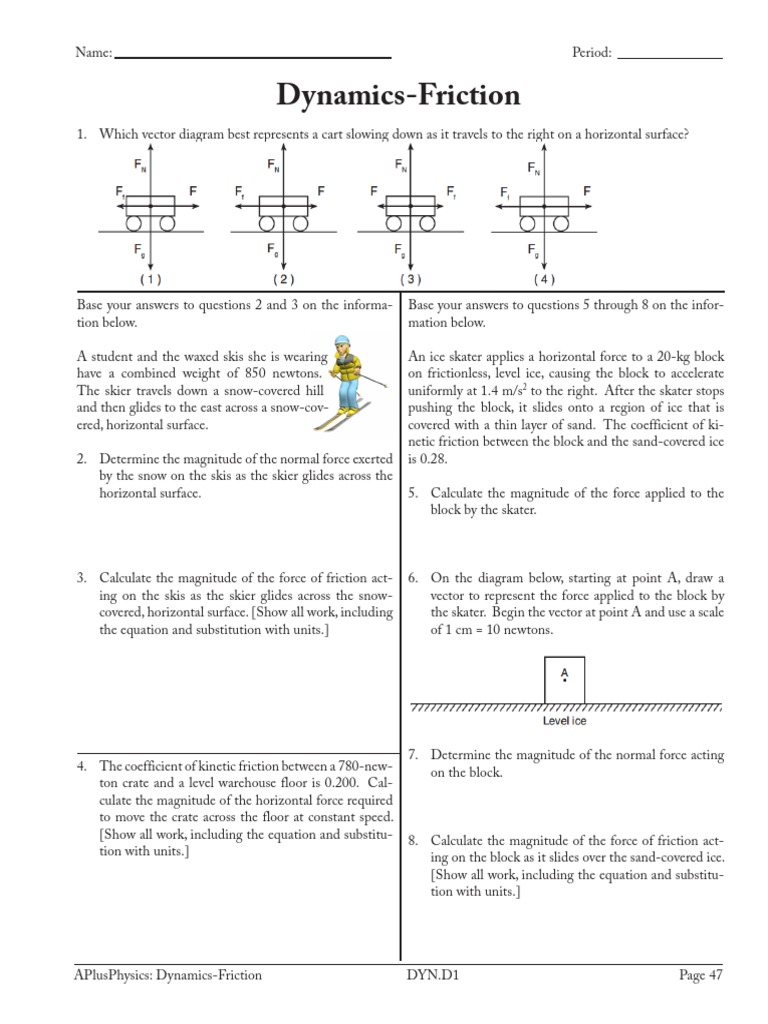 10 Dynamics Friction | PDF | Friction | Force - Scribd Dynamics-Friction Base your answers to questions 45 through 47 on the Base your answers to questions 48 through 51 on the information below and your knowledge of physics. information below and your knowledge of physics. ... Dynamics Worksheet (1) Jeremy Bowers. 5.Kinematics Free Fall. Bryan Cedric Narne. SCE3105-Dec-2010KLK. Aimee Greene.