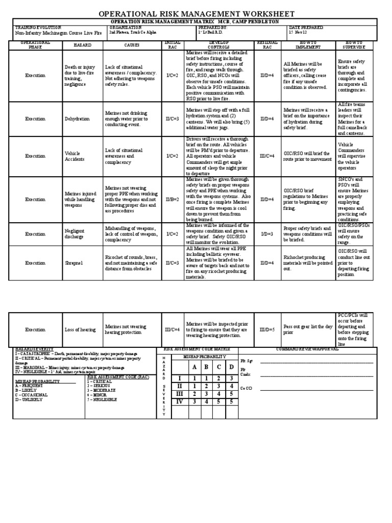 Operational risk management worksheet usmc