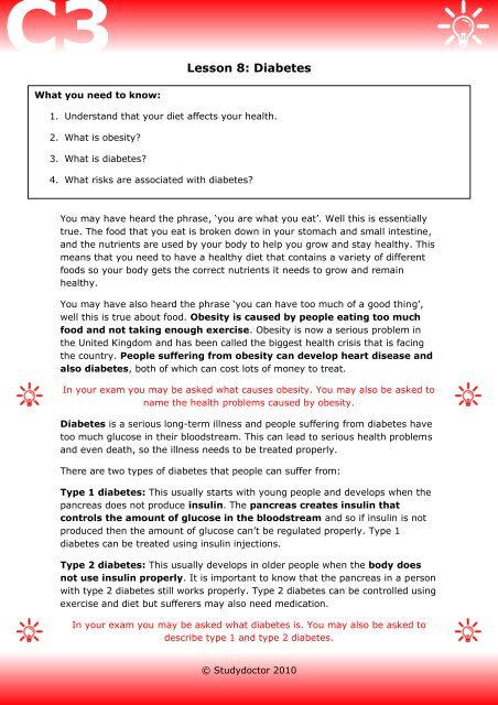 Diabetes worksheet for students