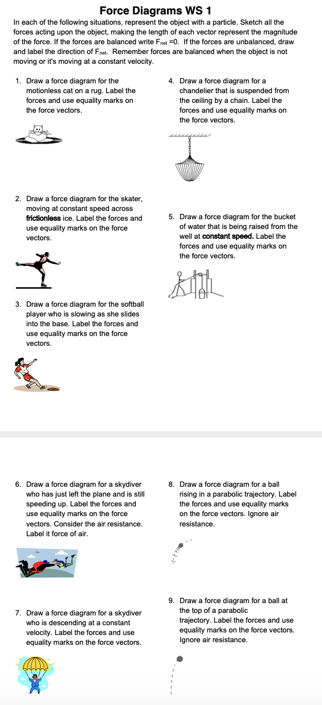 Free particle model worksheet 1a force diagrams answer key