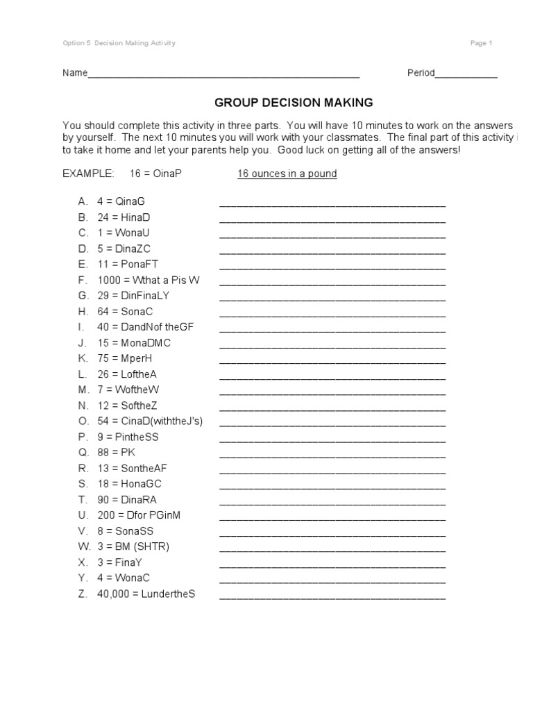 44 group decision making worksheet