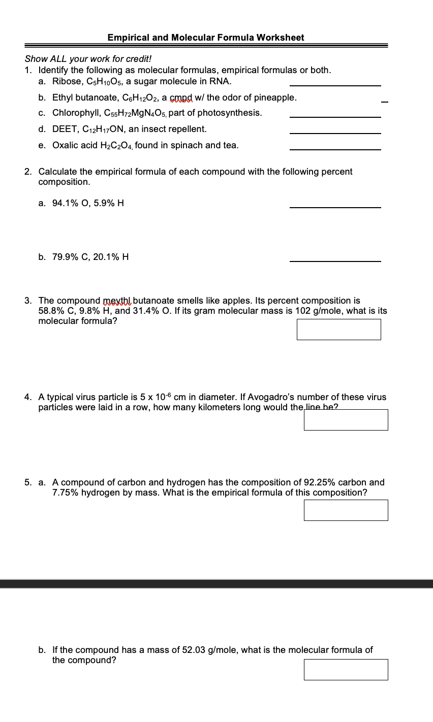 Empirical and molecular formulas worksheet