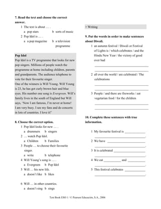 Pop Star Healthy Life KET Reading - Liveworksheets Pop Star Healthy Life KET Reading worksheet Live worksheets > English > English as a Second Language (ESL) > Health > Pop Star Healthy Life KET Reading Pop Star Healthy Life KET Reading Read and do the True/False. ID: 2113980 Language: English School subject: English as a Second Language (ESL) Grade/level: A2 Age: 8+ Main content: Health charlie and the chocolate factory worksheets - TeachersPayTeachers PDF. Easel Activity. This is an 84-page set of worksheets for the story "Charlie and the Chocolate Factory" by Roald Dahl.I grouped the worksheets into sets of two chapters (C1-C2, C3-C4, C5-C6, etc...). For each set of two chapters, there are three worksheets:* comprehension questions (multiple choice)* comprehension questions (short answer ... Pop Song Lyric Worksheets | Games4esl Pop songs with child-friendly lyrics/themes can be hard to find. All the worksheets below are for pop songs with clean lyrics that students of all ages love to sing. Listening to pop songs can be a great way to improve students' listening skills. All the song worksheets on this page are 'gap fill' exercises. answer-history-of-chocolate.pdf - Chocolate: answers A... W e normally think of chocolate as a sweet treat, but it began as a bitter beverage! Chocolate as a food got its start in ancient times, when it wasn't just a dessert - it played an important part in ritual and culture. In ancient Latin America, chocolate was worshipped - literally! Both the Mayan and Aztec people had gods that they believed were responsible for bringing chocolate as a ...