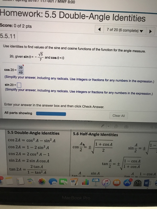 Double angle identities worksheet. Pre-Calculus Vol 2 Tutor Worksheet 11 Double Angle Identities MathTutorDVD.com. Trigonometry – Pre-Calculus, Vol. 2 Tutor - Worksheet 11 – Double Angle. Identities. 1. Use double angle identities to show how that. Worksheet #2 – Double Angle Formulas - Cobb Learning Worksheet #2 – Double Angle Formulas. Use a double angle formula to rewrite the expression. 1. 6sin cos x x= 2. sin cos. Double angle identities answer key - Fort Bend ISD PRECALCULUS ADVANCED. WORKSHEET ON DOUBLE-ANGLE IDENTITIES. Use a double-angle formula to rewrite the expression. 1.6sin sin x cos x = 13 sin2x. 3(25mxcosx). Section 7.3 Double Angle Identities - OpenTextBookStore These identities follow from the sum of angles identities. Proof of the sine double angle identity. )2sin( α. ) sin(.