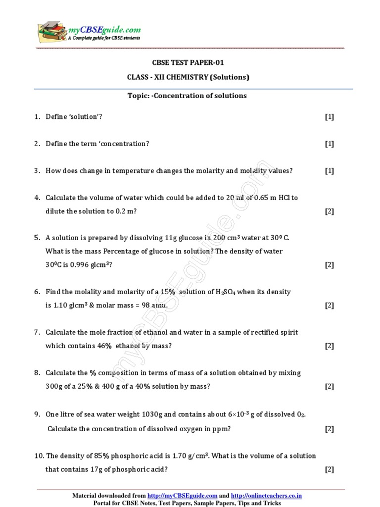 Molarity Questions - Practice Questions of Molarity with Answer ... - BYJUS Calculate the molarity of the solution. Answer: The chemical formula of hydrochloric acid = HCl The chemical formula for Water = H 2 O The molecular weight of HCl = 35.5 ×1 + 1×1 = 36.5 moles/gram The molecular weight of H 2 O = 1 ×2 + 16 ×1 = 18 moles/gram Given, mass of hydrochloric acid in the solution = 1.56 g