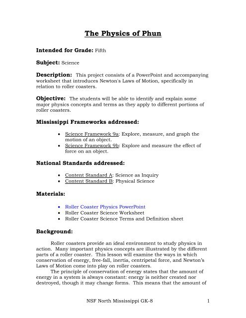 PDF Physics of Roller Coasters - The Tech Interactive Amusement Park Physics - Roller Coasters: This site has a great interactive to teach students and teachers ... Physics in Motion: Strap yourself to a rocket - and get ready to experience serious G-forces. Ignite the rocket and launch a timed run down a 6 mile track. Brave falling rocks, kick off booster rockets, and destroy physical
