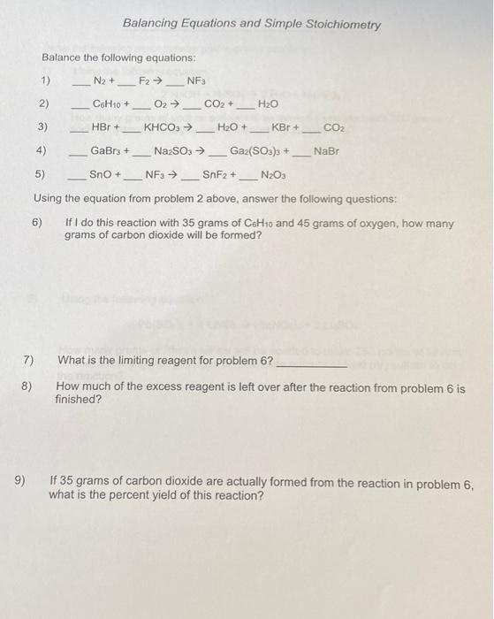 40 chemical equations and stoichiometry balancing equations worksheet answers