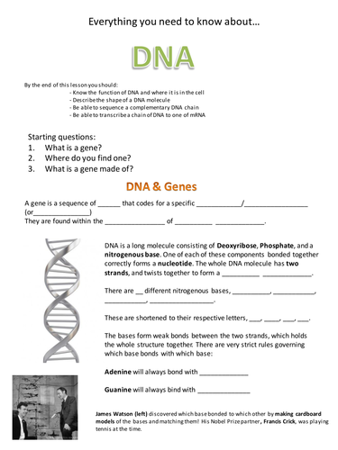 DNA base pairing worksheet - Scientific Worksheets DNA base pairing worksheet-Answer key. 1.) What is DNA? DNA (deoxyribonucleic acid) is a biomolecule found in all living organisms. Its main function is to carry the genetic information of living organisms. 2.) Name the different components of DNA. Nitrogenous bases. Deoxyribose sugar. Phosphate molecule. 3.)