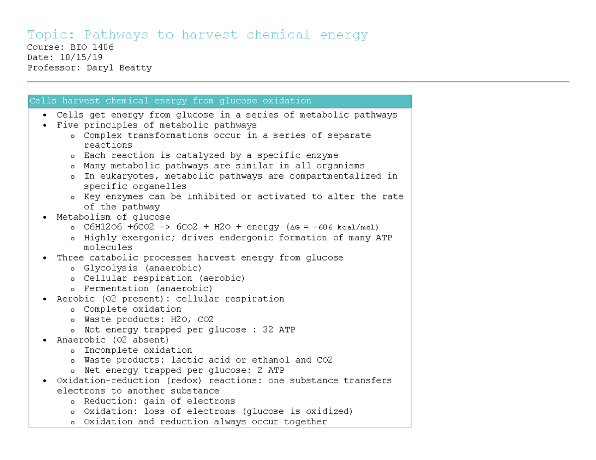 Guided Notes How Cells Harvest Energy Answers Chapter 6: How Cells Harvest Chemical Energy The overall chemical equation for cellular respiration is: C6H1206 + 602 —+ —+ 6CO 61-1,0 Briefly explain why the equation has multiple arrows. The arrows represent the fact that Page 2/6 November, 18 2022 Guided Notes How Cells Harvest Energy Answers
