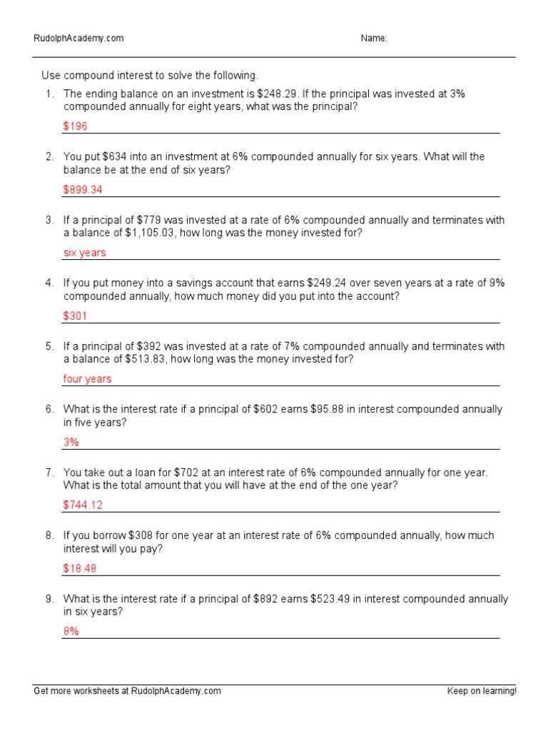 Compound interest worksheet answers