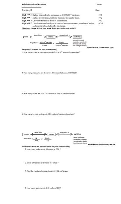 Molar conversion worksheet answers. Molar Mass And Mole Conversions Worksheet Answers 5.4: Molar Mass- Mole-to-Mass And Mass-to-Mole Conversions Now, we take this answer and convert it to grams of SO 3, using the molar mass of SO 3 as the conversion factor: 10.77molSO3 × (80.06gSO3 1molSO3) = 862 gSO3 Our final answer is expressed to three significant figures. Molar Conversions Teaching Resources | Teachers Pay Teachers Practice over 104 mole conversion and molar mass problems with these 6 worksheets. Each worksheet is designed to naturally scaffold student understanding to challenging mole conversions involving mass, particles, and volume.Possible Uses- Scaffolded Practice- Worksheet- Activity- Homework- Classwork- Test Review- Quiz ReviewFeedbackHave questions or feedback? npib.hoody-boss.shop › ap-chemistry-unit-1Pre AP Chemistry Unit 1 HW Packet Name _ WKS 1.1 ... If only one number is given, we can assume. that the number of protons is its atomic number. Therefore (a) 7 protons and 8 neutrons.Chemical equilibrium worksheet 1 answers. Worksheet quiz equilibrium chemical practice study applications development compounds chemist berthollet changed theory 19th century early current french did discover. ... chemistry mole conversions worksheet 13 Best Images Of Mole Conversion Worksheet Answer Key - Mole Ratio . mole conversion worksheet answers grams moles key convert answer worksheets worksheeto chemistry via number molecules avogadro problems. 5- Mole, Stoichiometry - Mr. Birnbaum's Chemistry And AP Computer