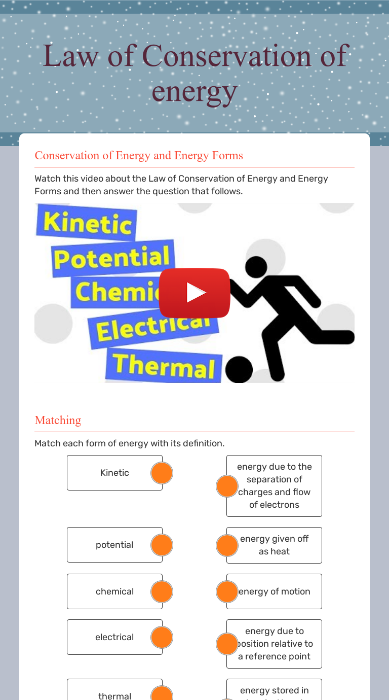Work and energy | Physics library | Science | Khan Academy What is conservation of energy? (Opens a modal) Work and the work-energy principle (Opens a modal) Work as the transfer of energy (Opens a modal) Work example problems ... Intro to springs and Hooke's law (Opens a modal) What is Hooke's Law? (Opens a modal) Potential energy stored in a spring (Opens a modal) What is elastic potential energy?